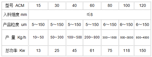 ※ACM空气分级磨是源于德国技术,设备性能已等同进口。